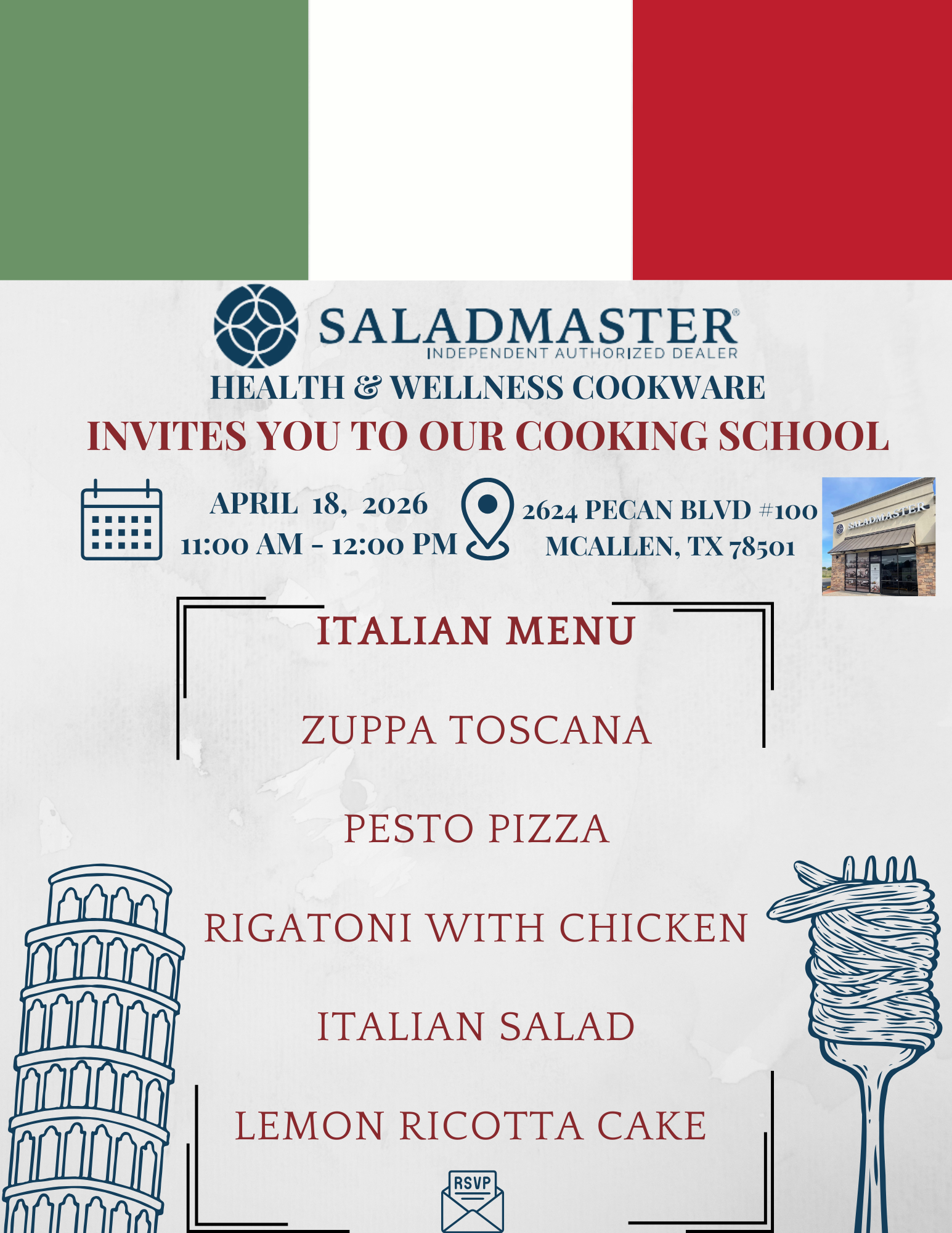 As a Valued Saladmaster Owner of Health & Wellness Cookware, you have access to our Cooking Classes as part of your Lifetime Membership to our Exclusive Content & Specials! We will be posting our menu as the date approaches.